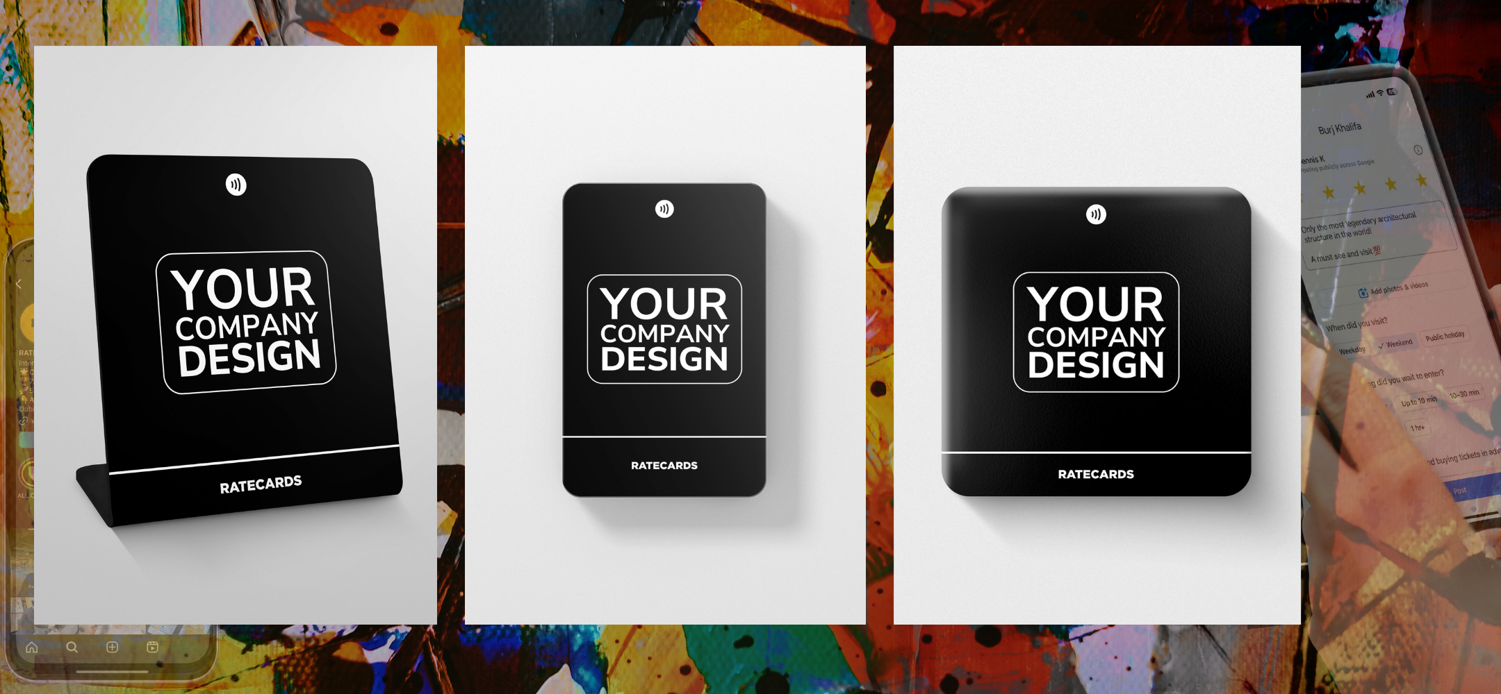 With RATECARDS™, it’s not just about making an impression—it’s about making the ultimate impact! Our custom RATECARDS™ are designed to fuse your brand’s unique flair with the most advanced NFC technology available. This isn’t just customization; it’s a game-changing tool that catapults your brand visibility and drives phenomenal growth through real-time customer feedback and engagement.